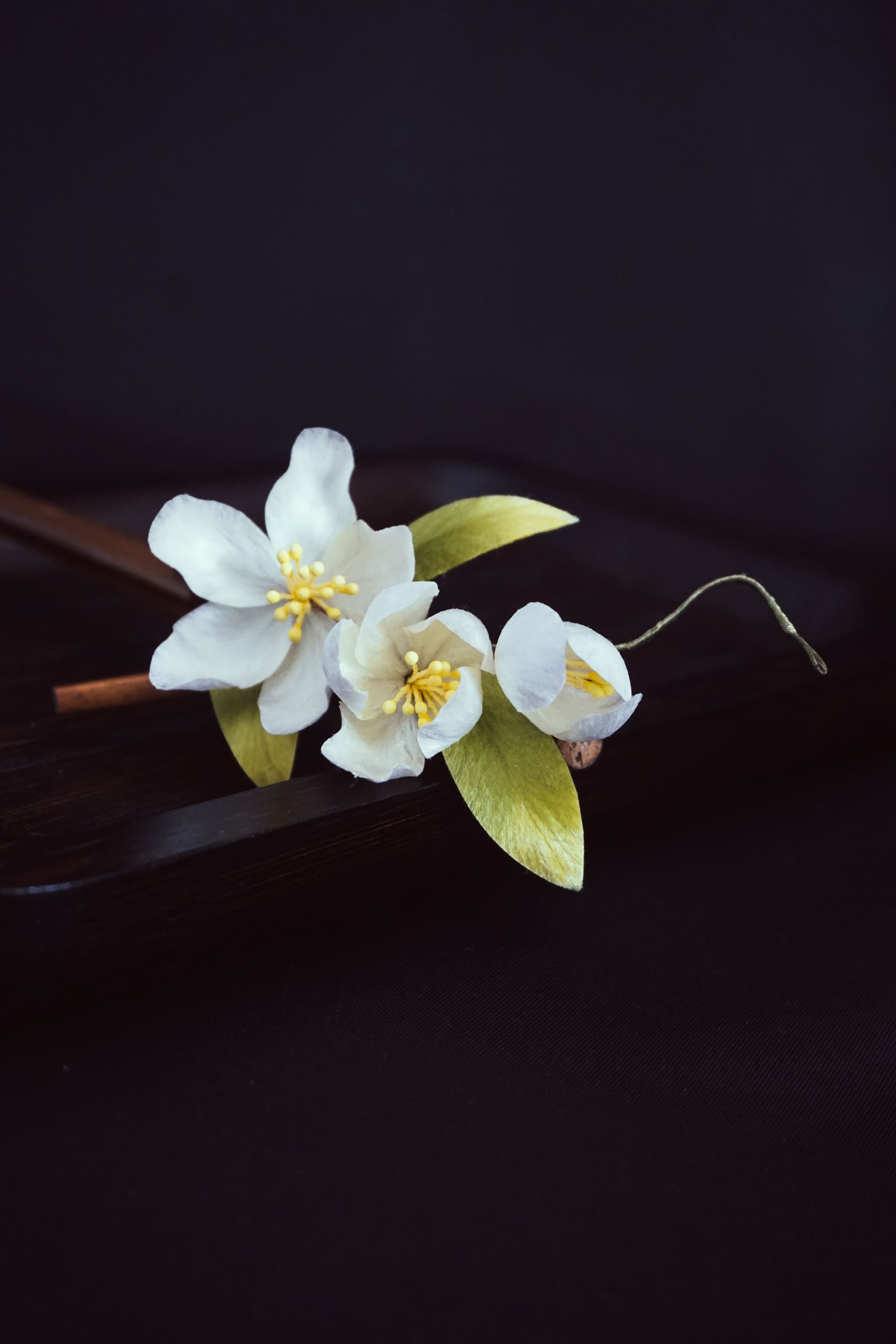 A delicate hair pin inspired by the purity of jasmine flowers