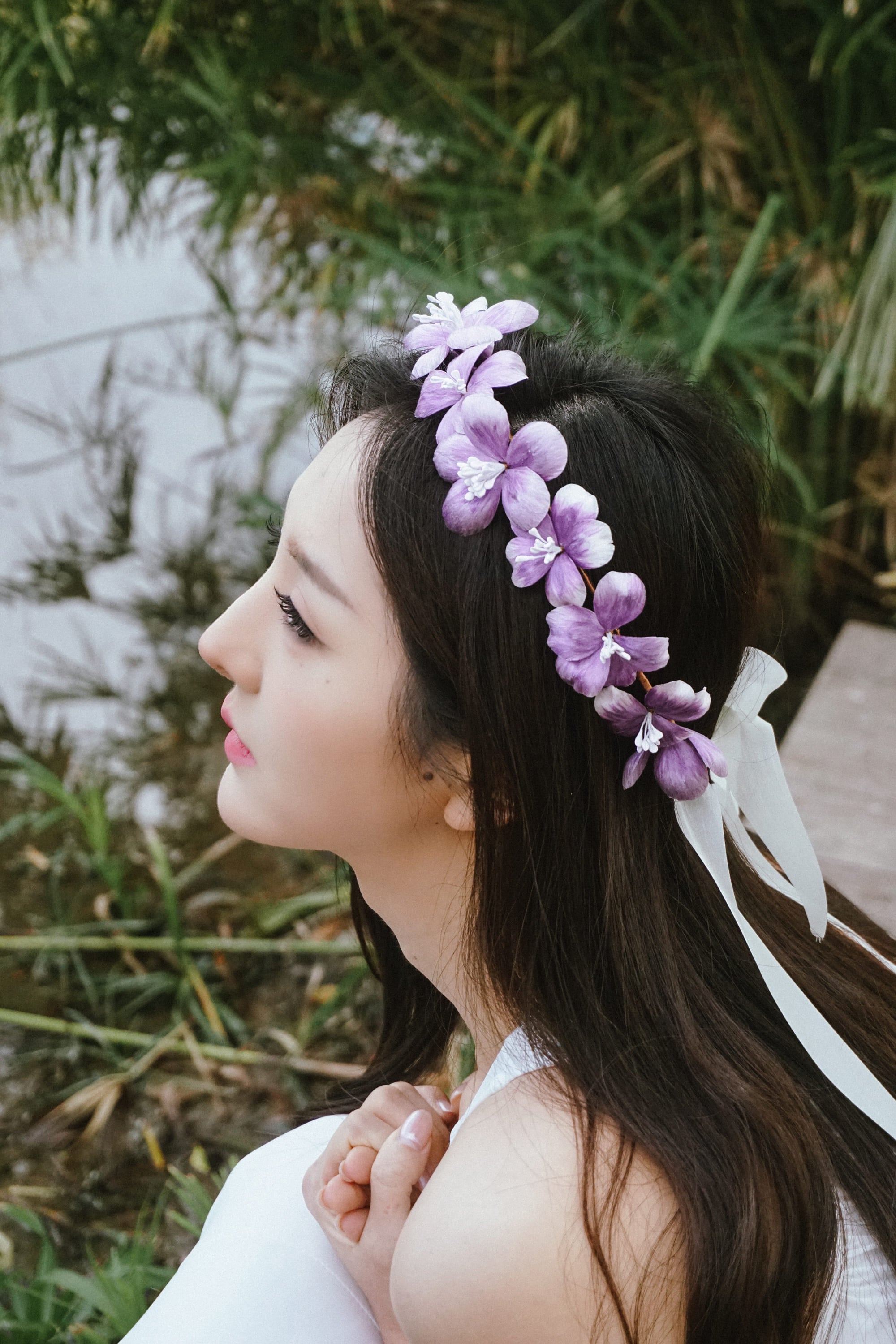 The Purple Romance Flower Crown is a delicate handmade floral halo inspired by the gentle beauty of lavender blossoms. With soft purple petals arranged in a natural flowing line, this crown creates a dreamy and romantic look that feels effortlessly elegant.
