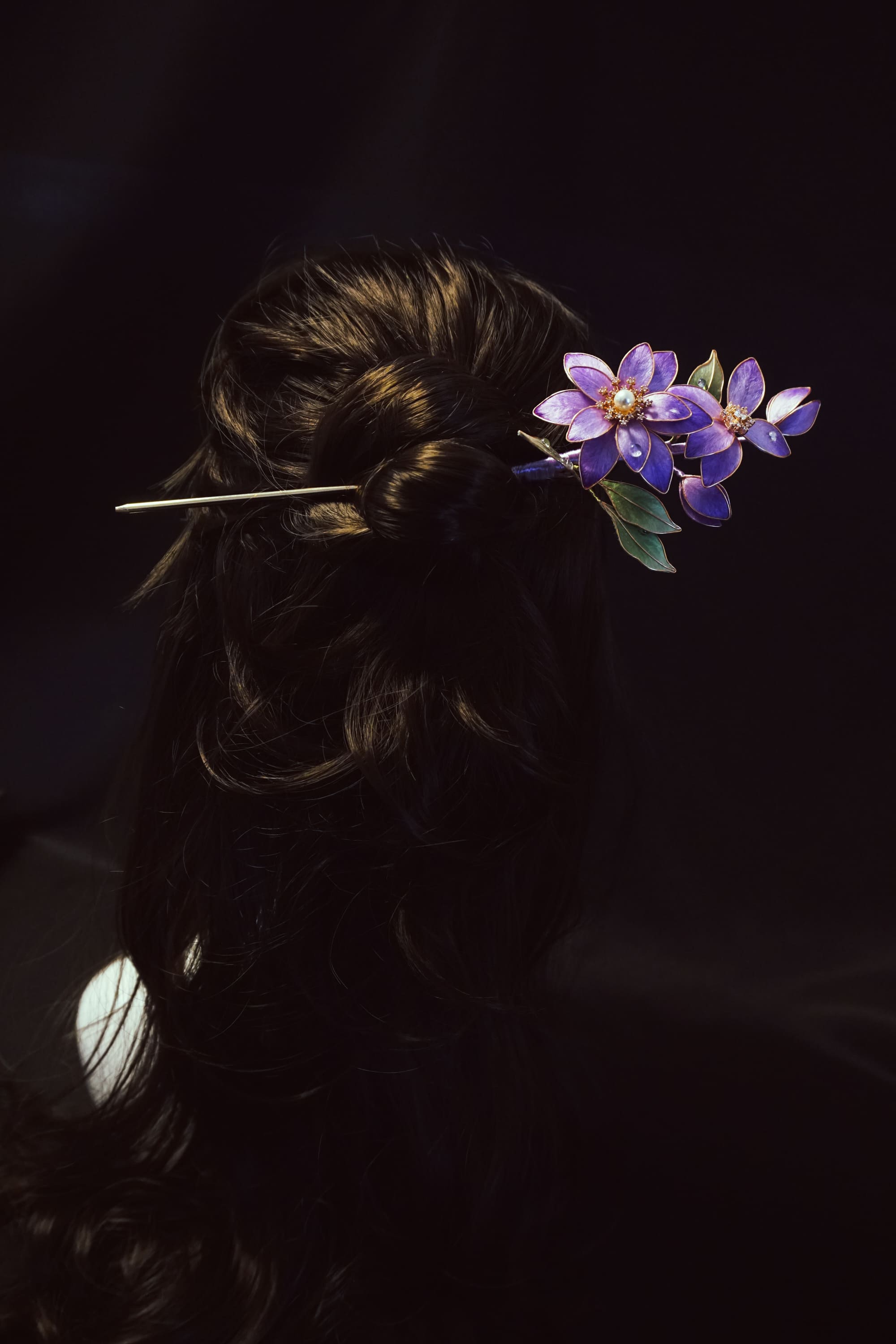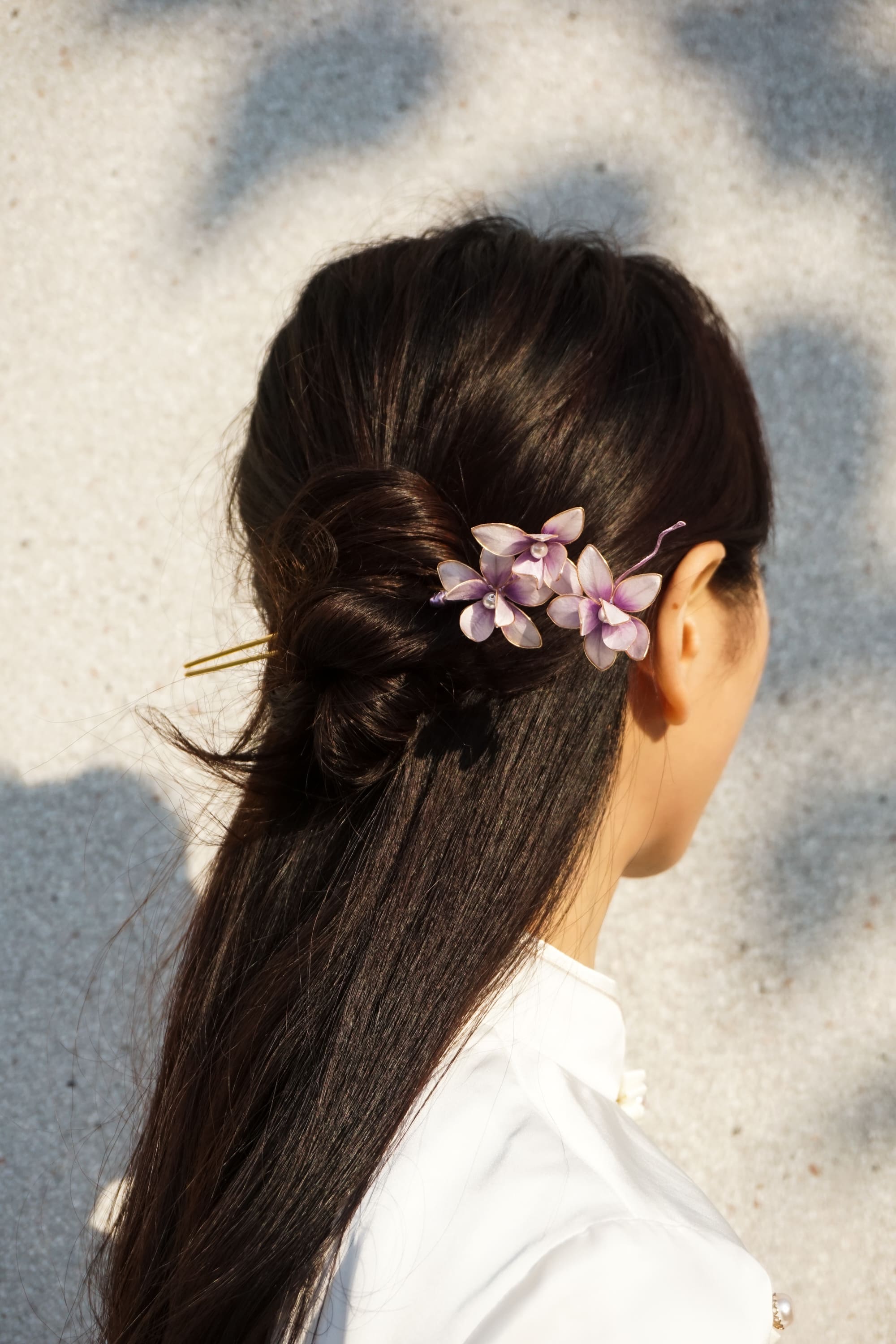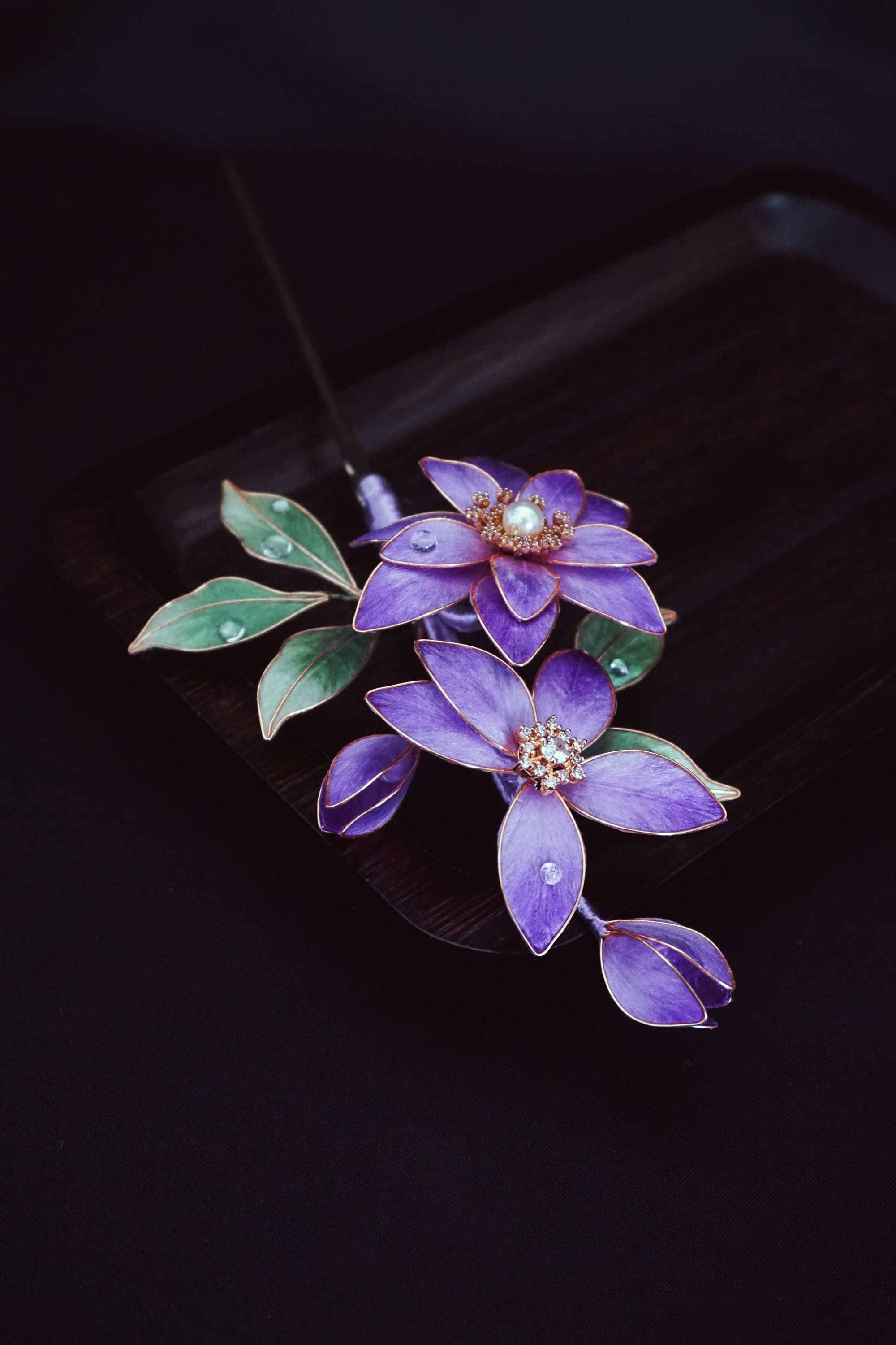 A graceful floral hair pin inspired by delicate violet blossoms